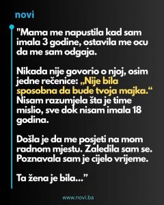 - Danas, iskustvo odrastanja bez majke oblikovalo je njenu snagu, empatiju i samosvijest. Iako izgubljene godine niko ne može vratiti, spoznaja da ljubav postoji, čak i kada je pogrešno iskazana, omogućila joj je da zatvori bolno poglavlje i nastavi dalje. Svaka odsutnost, svaki nedostatak objašnjenja sada je postao lekcija – podsjetnik da život nosi složene emocije, ali da istina, kada se pojavi, oslobađa i liječi.
