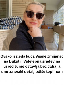 - Iza svjetala reflektora i buke velikih bina, život poznatih često izgleda potpuno drugačije nego što ga javnost zamišlja. Upravo takvu priču nosi i poznata pjevačica Vesna Zmijanac, koja je tokom godina pronašla svoj mir daleko od gradske vreve, na obroncima Bukulja. Tamo, okružena prirodom, izgradila je mjesto koje za nju ima mnogo dublje značenje od običnog utočišta.